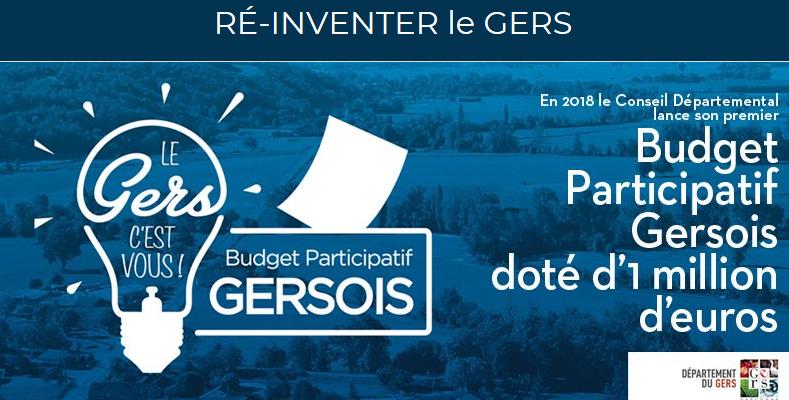 Pour permettre aux Gersois.es de proposer et de choisir directement les projets utiles au Gers, le Conseil Départemental lance son premier budget participatif. Cela veut dire qu’en 2018, vous allez proposer et choisir, comme le font les conseillers départementaux, les projets qui vous sembleront utiles au Gers et aux Gersois.es, et qui pourront être portés par les compétences du Département
