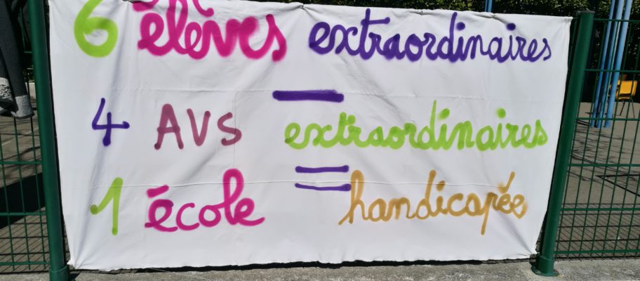 4 AVS actuellement en poste sur l’école de Frégouville,accompagnent la scolarité de 6 enfants en situation de handicap, et assistent les enseignantes dans leur travail quotidien auprès d’eux, entre autres.